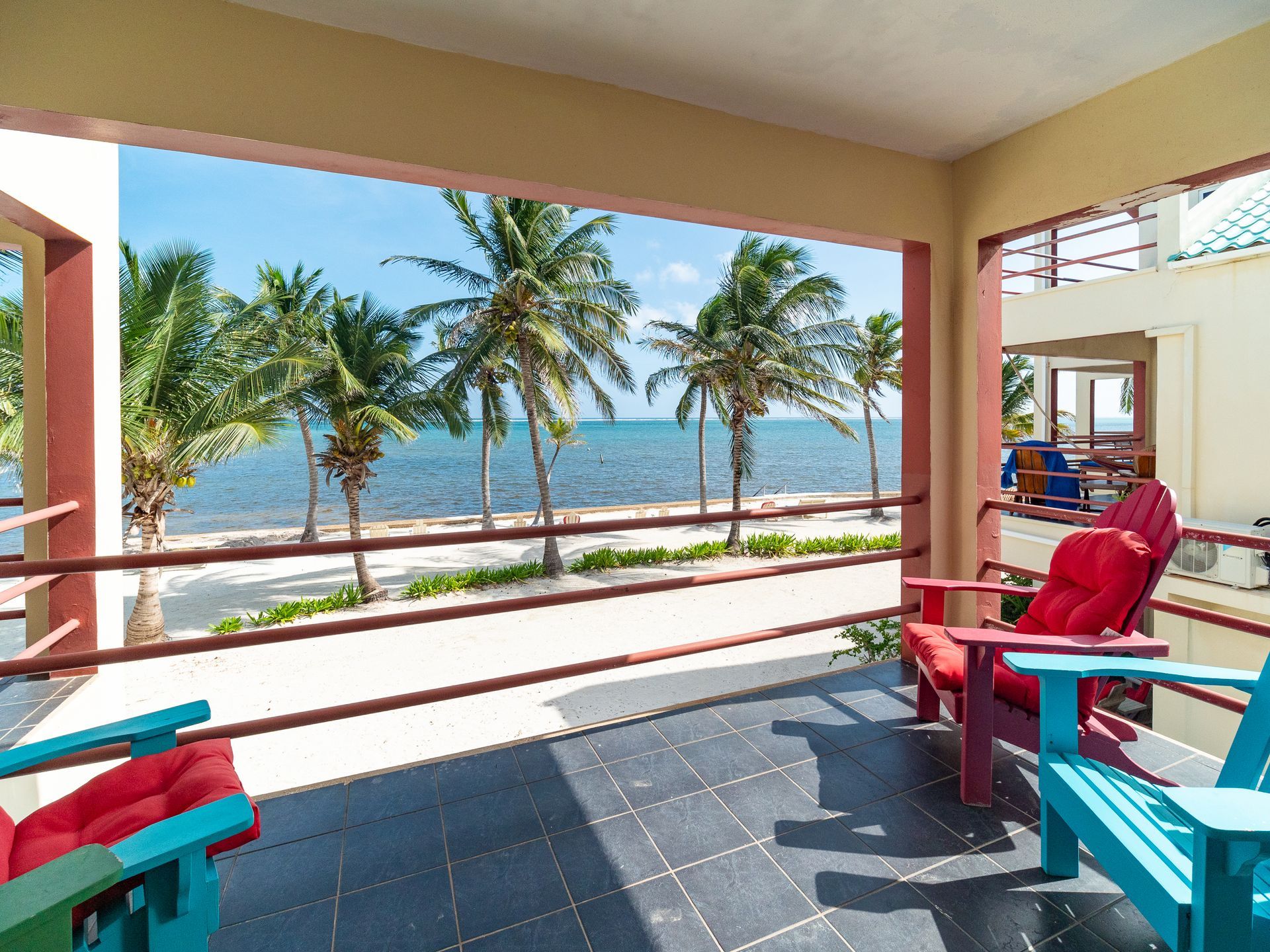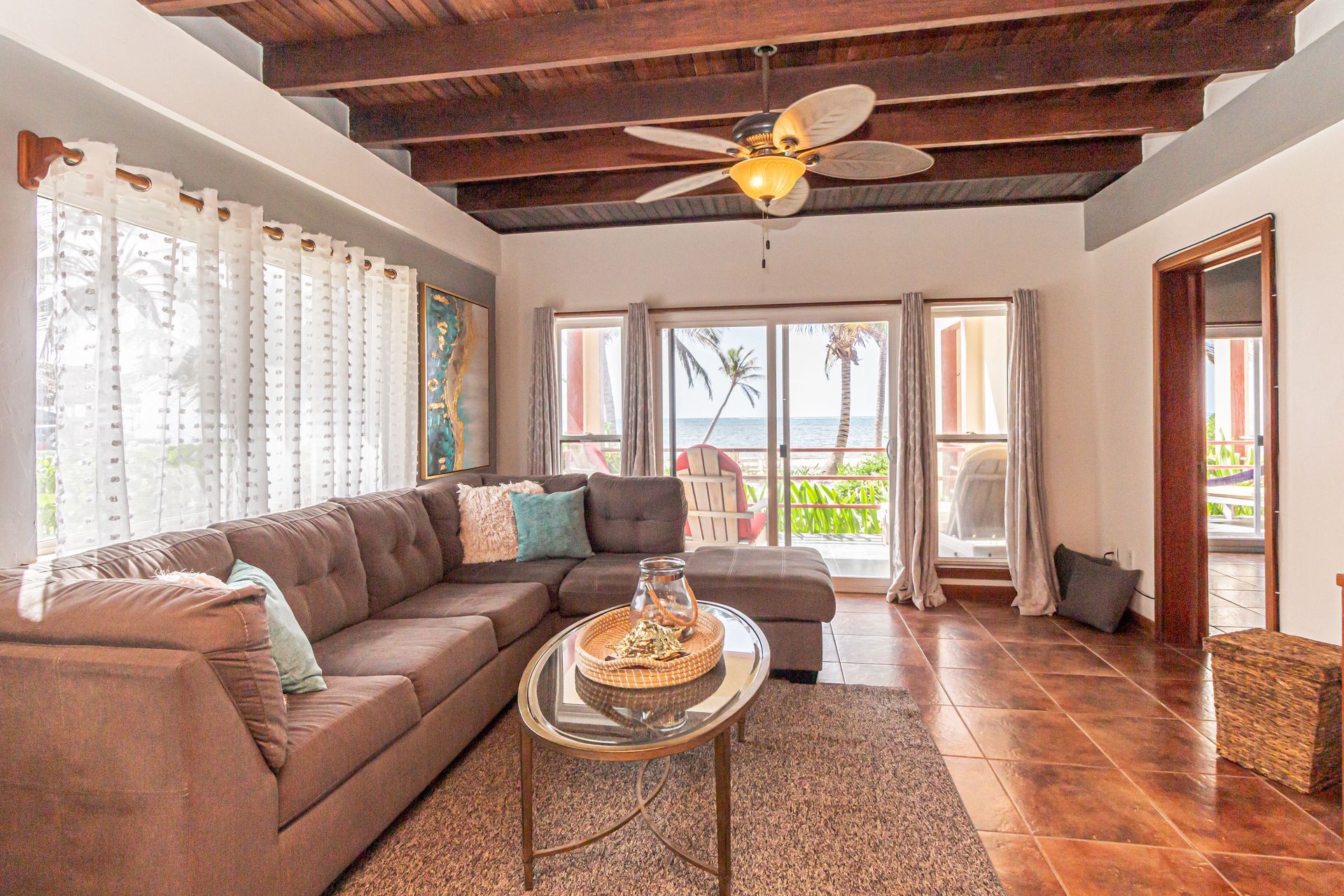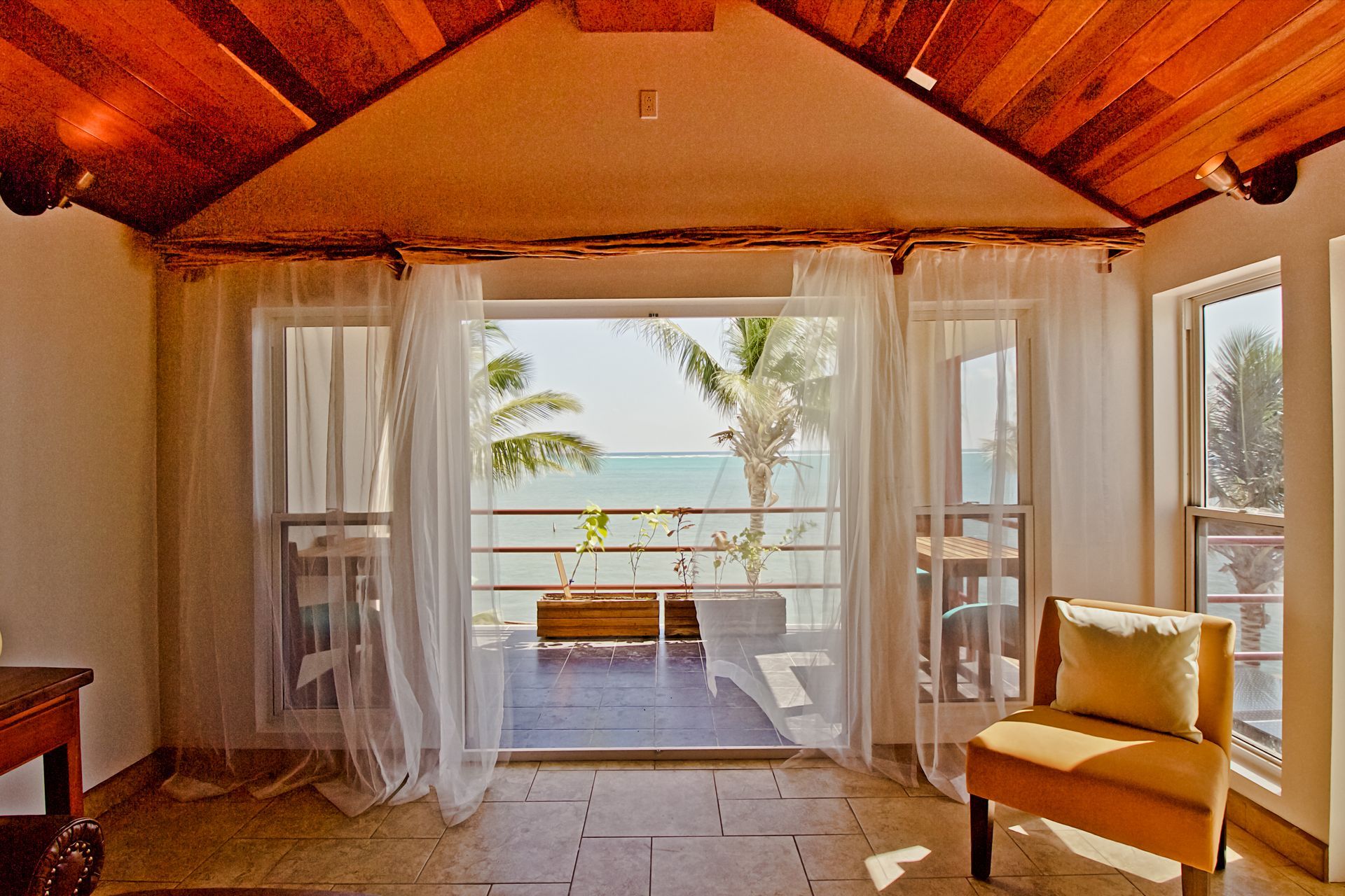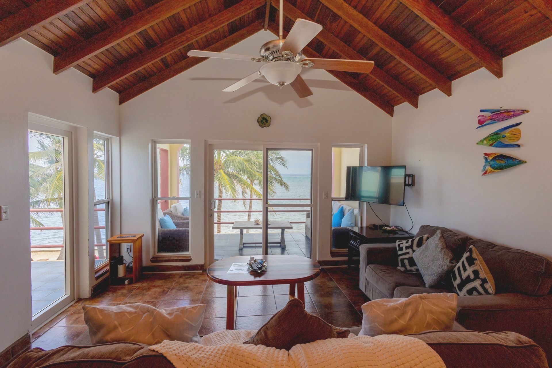 A stunning penthouse featuring Belizean hardwood finishes and multiple outdoor spaces with panoramic beachfront views