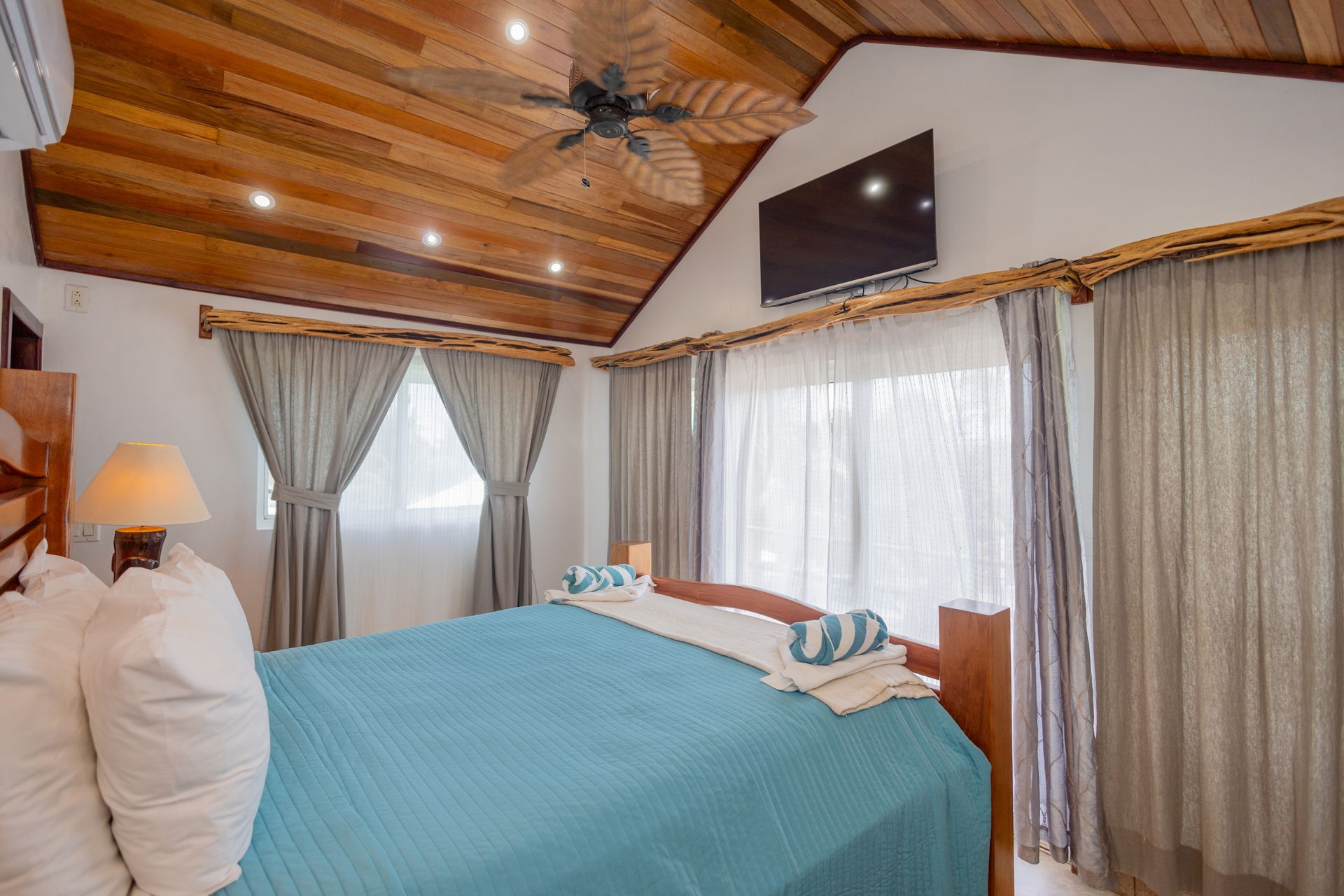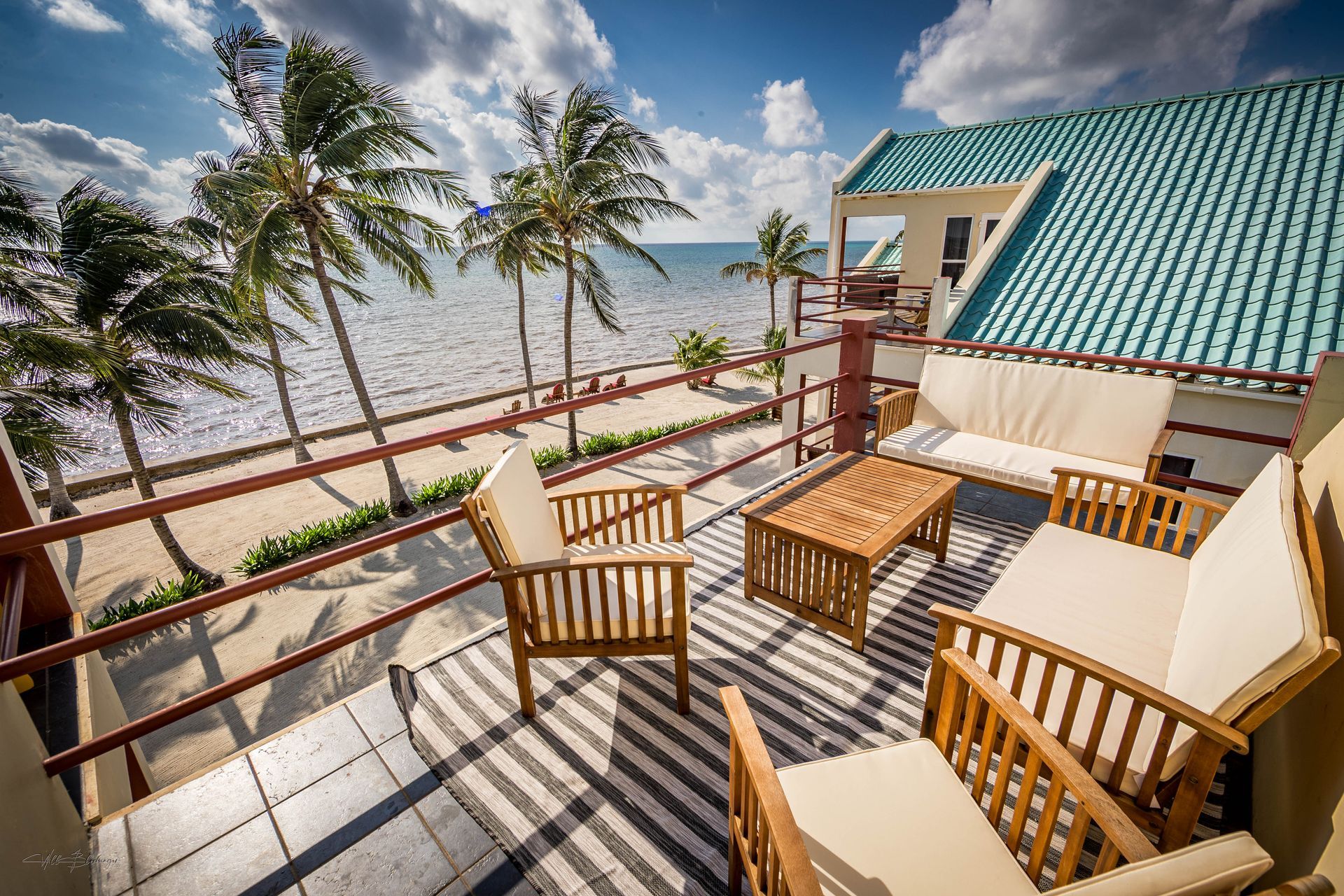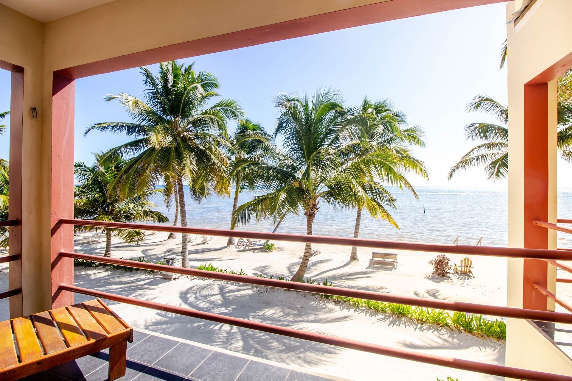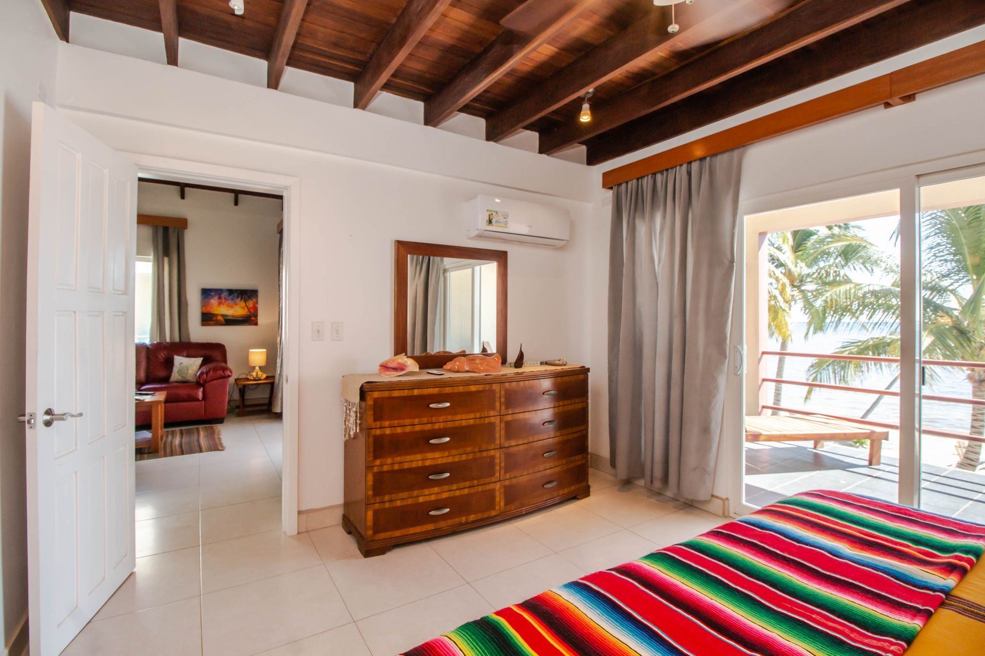 A stunning penthouse featuring Belizean hardwood finishes and multiple outdoor spaces with panoramic beachfront views