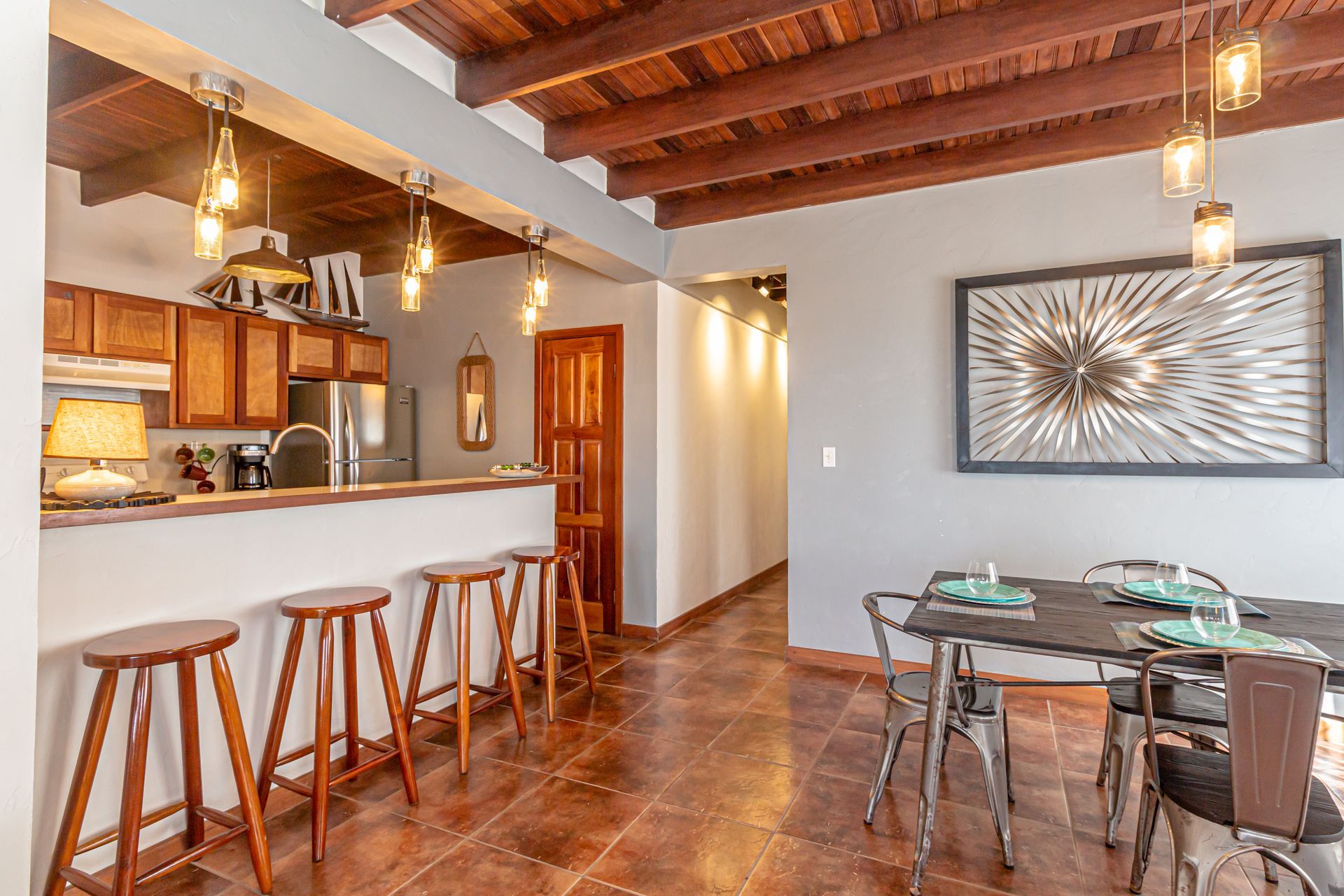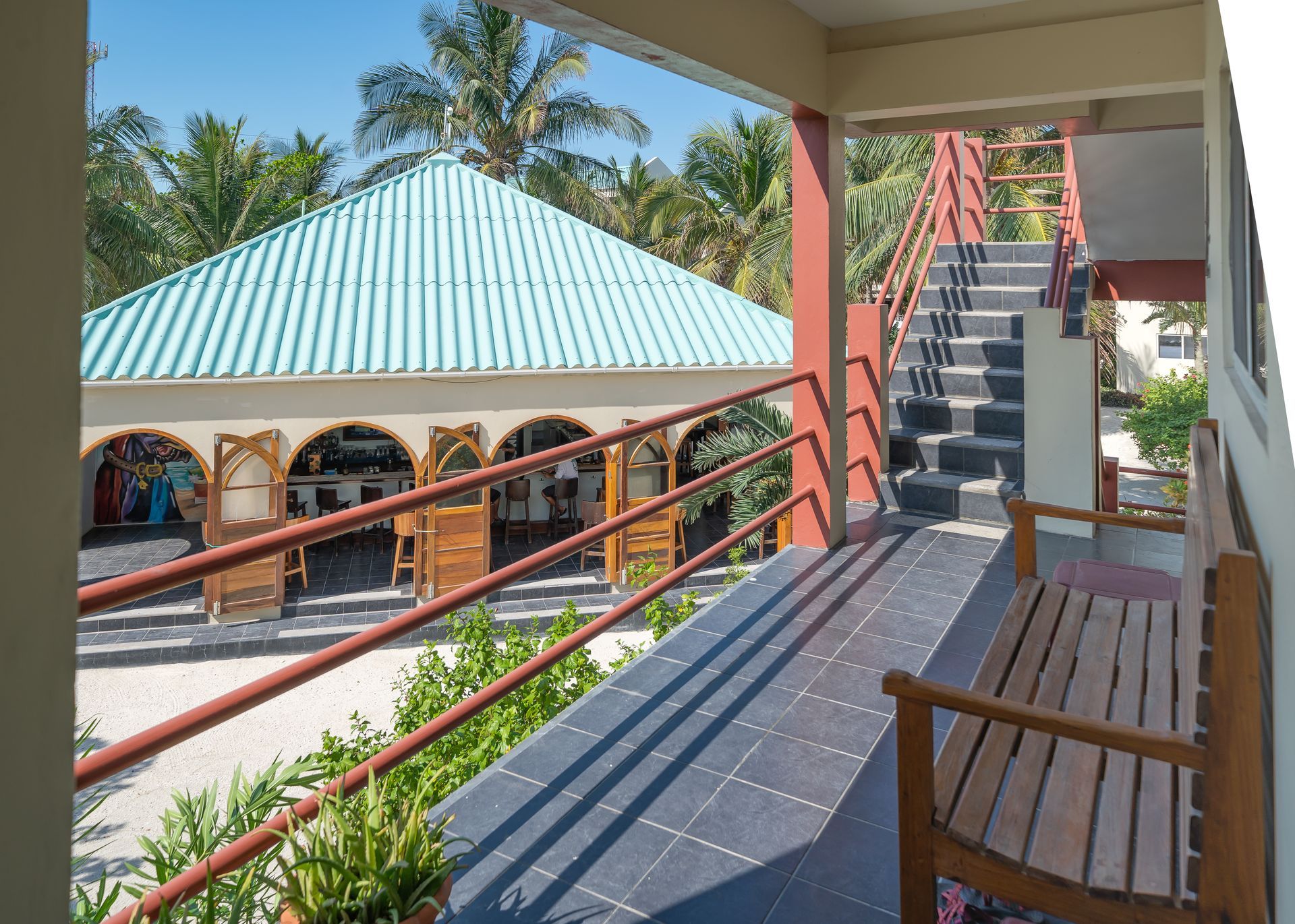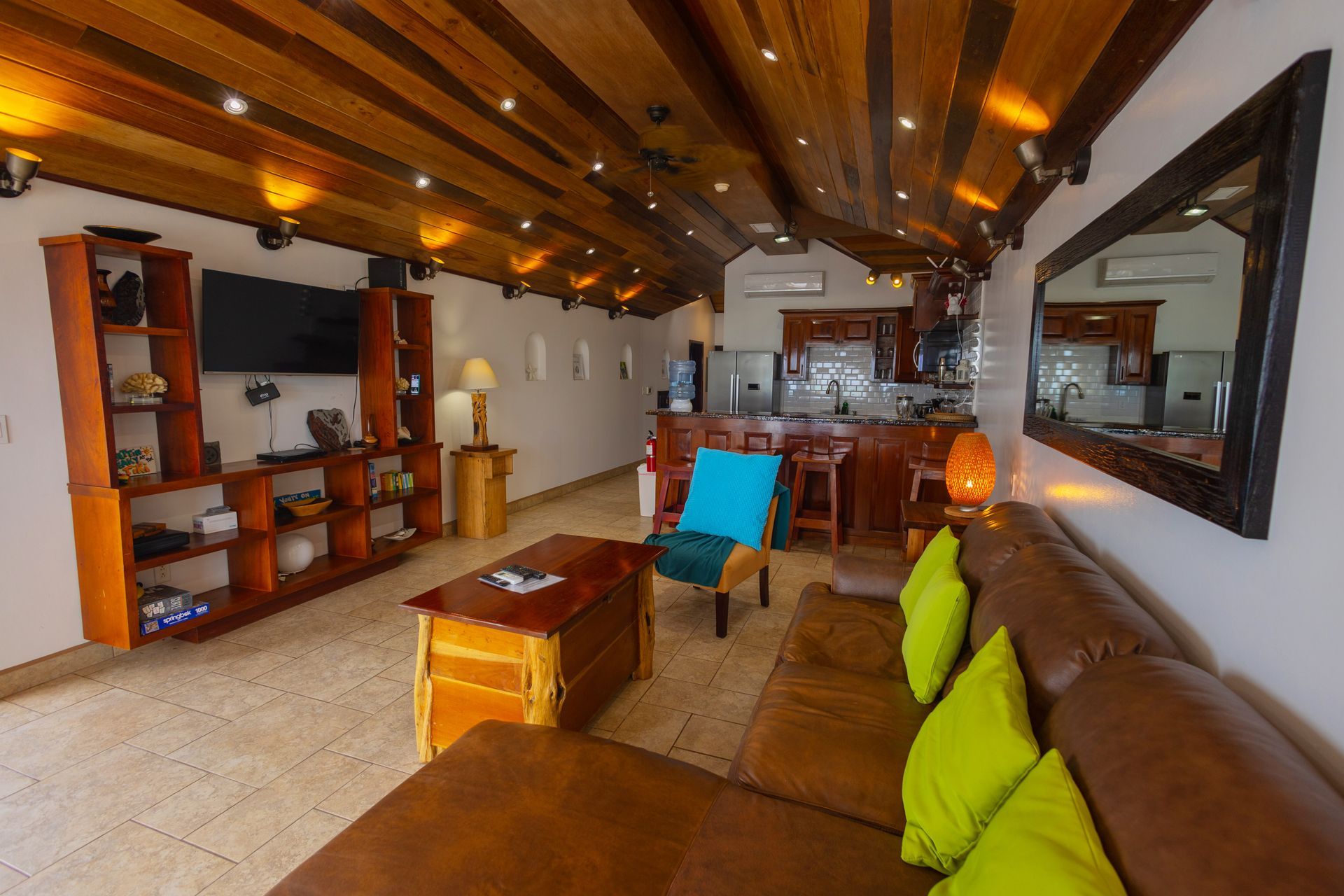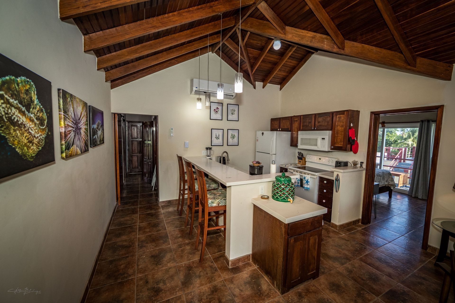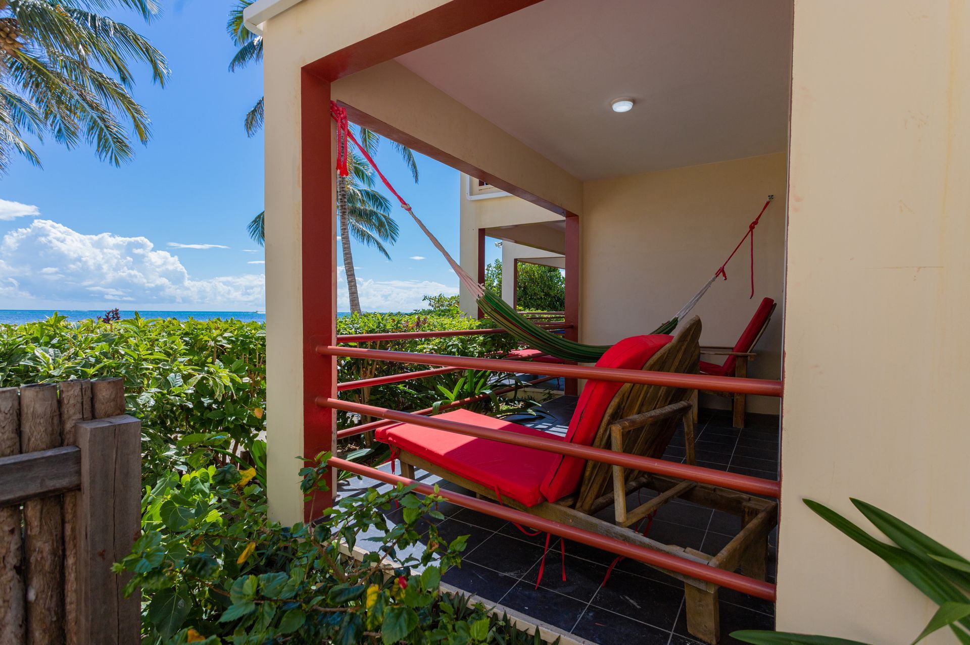 A stunning penthouse featuring Belizean hardwood finishes and multiple outdoor spaces with panoramic beachfront views